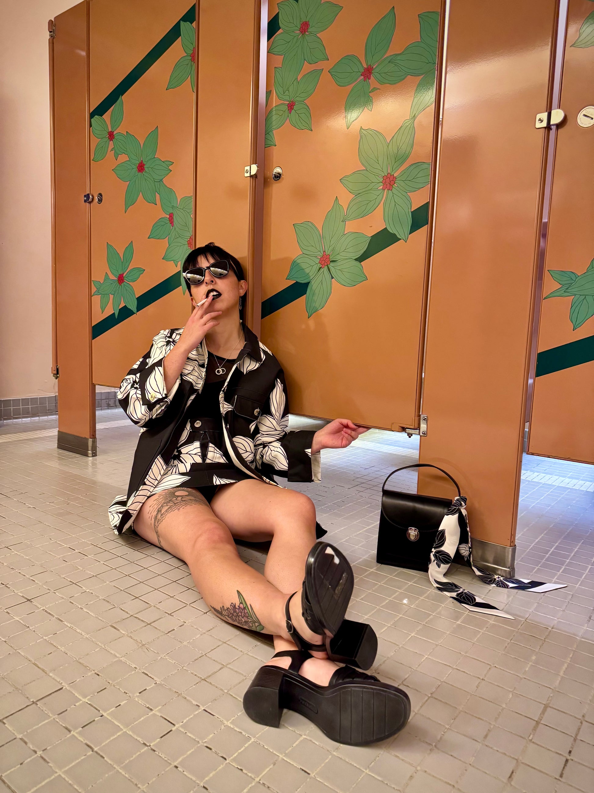 Inspired by the 1% for arts elements of the first-floor restroom of The Alaska Center for Performing Arts (PAC), this black and white silk scarf is a timeless and versatile print that features an unexpectedly tropical Alaskan Dogwood flower print.