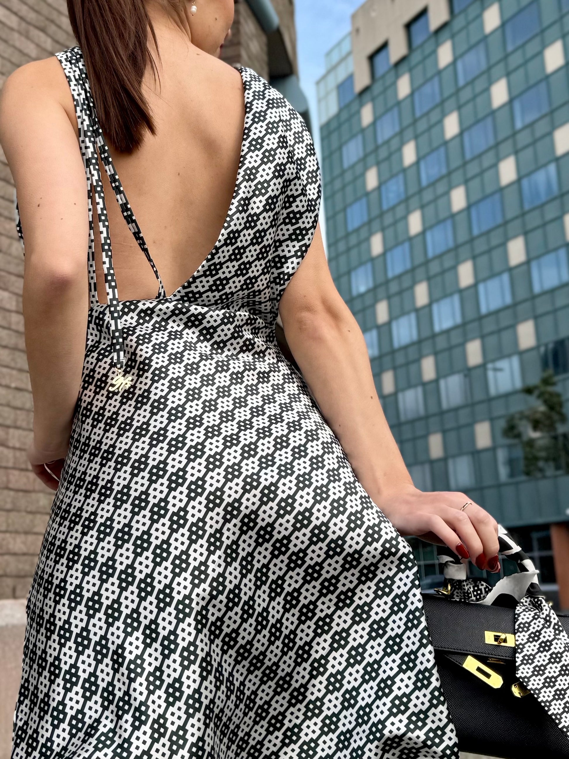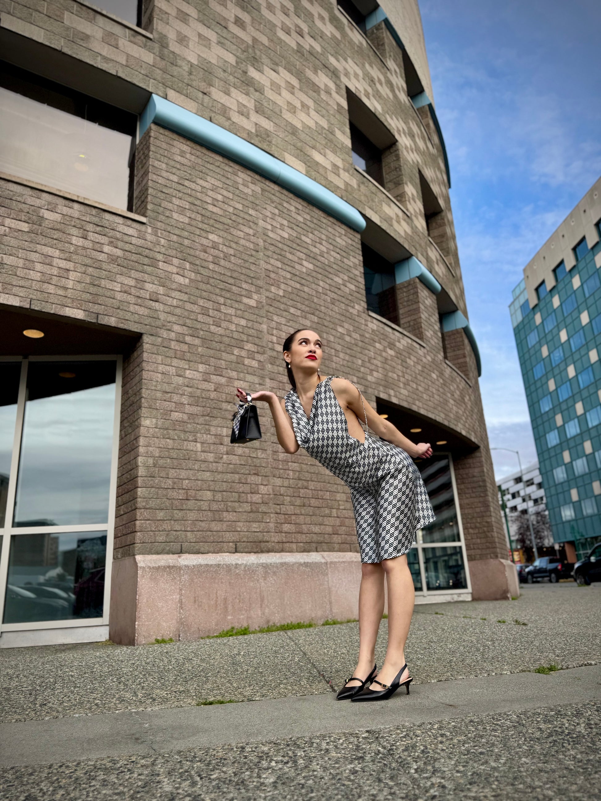 Inspired by the beloved poppy carpeting of The Alaska Center for Performing Arts (PAC), the double-sided Phantom Peony silk scarf blooms in black and white, featuring a bold "houndsbrick" print derived from the exterior brickwork of the building.